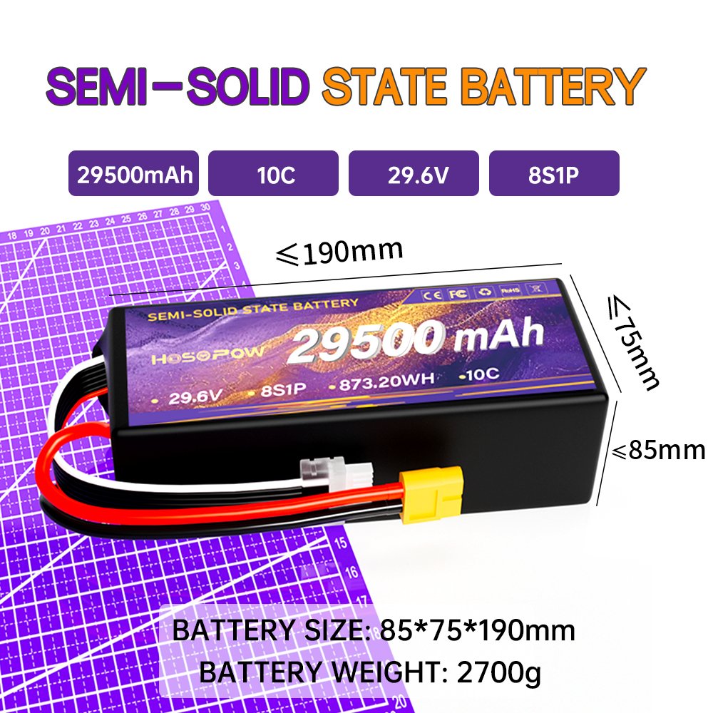 29500mah Semi Solid State Battery for FPV Drone 66.6v Lipo Battery 18s 10c Drone Battery Hosopow 29.5ah fpv drone battery