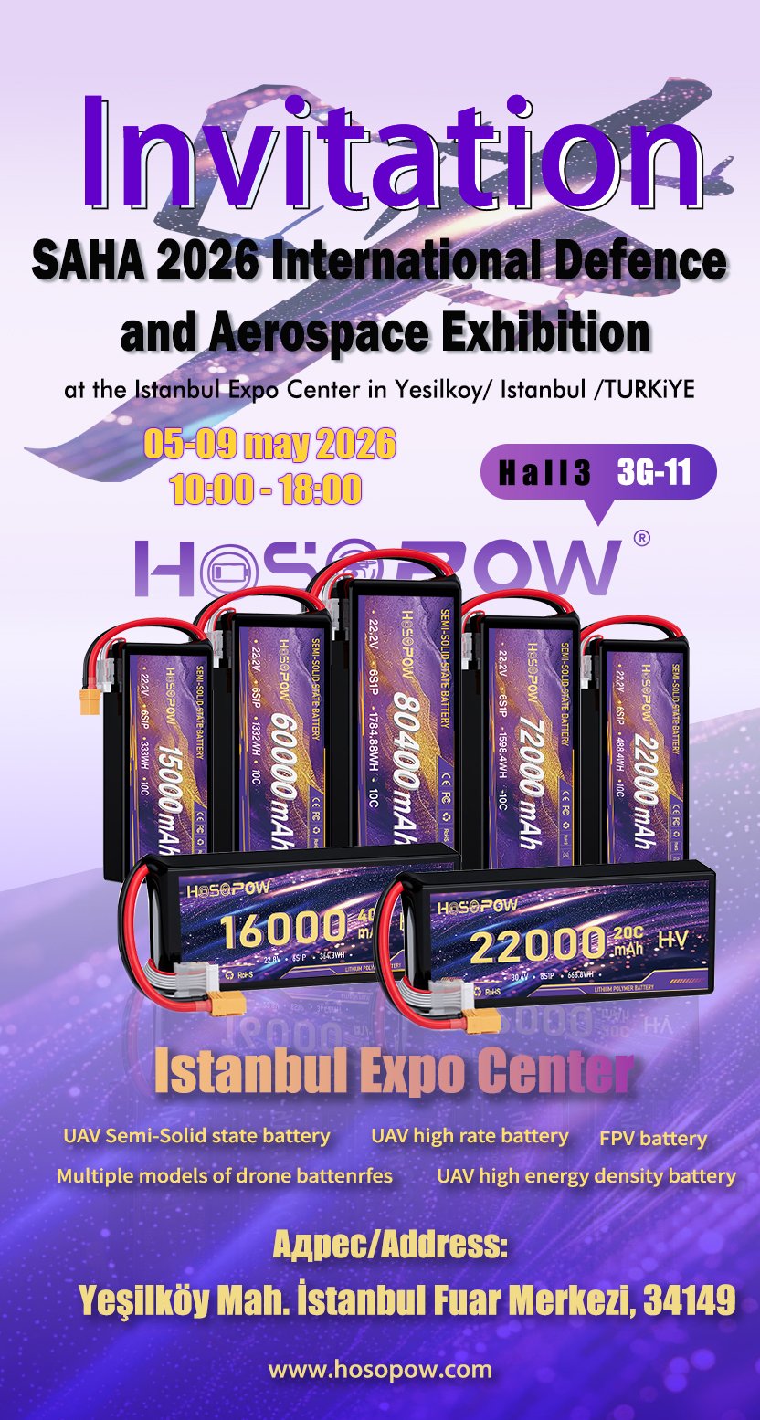 We are thrilled to announce that HOSOPOW will participate in the SAHA 2026 International Defence and Aerospace Exhibition, taking place from May 5–9, 2026 (10:00–18:00 daily) at the Istanbul Expo Center in Yeşilköy, Istanbul, Türkiye. Visit us at Hall 3, Booth 3G-11 to explore our cutting-edge battery solutions tailored for the defence and aerospace industries.